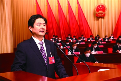 章丘区区长边祥为代表章丘区人民政府向大会作报告