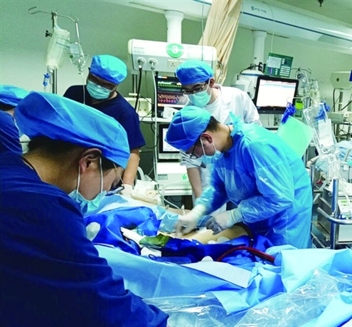 17:35,ICU紧急接收了一位39岁的心脏介入术后患者,心功能非常差,胸痛难忍,送来时团队已经做好ECMO抢救准备,护士预冲管路和医生穿刺置管同时进行,医护人员以最快的速度完成了仪器调试、上机等操作。ECMO的成功上机只是“万里长征第一步”,为了促进患者的心肺功能顺利恢复,ECMO团队丝毫不敢懈怠,医生一直守护在患者床旁,一旦发现病情变化立即做出处理,并对呼吸支持、循环评估、脏器功能保护、镇痛、镇静、抗凝治疗、营养支持等每一环都严格把控,不断调整升压药物;ECMO护理团队寸步不离,第一时间配合医生完成治疗。本该5点半下班的江淑敏和刘婷婷都没有走,全部参与抢救,小夜班应该12点下班的护士直到凌晨两点才下班,抢救一直持续到早上,整晚输血量达10000多毫升。