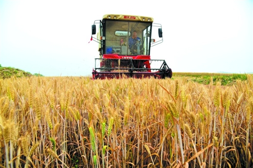 正值“三夏”时节,各小麦产区陆续进入小麦收获期,农民在田间收割,农机在麦田里穿梭,一派繁忙景象。图为5月27日,农机手驾驶收割机在枣庄市山亭区桑村镇任庄村的麦田抢收小麦。