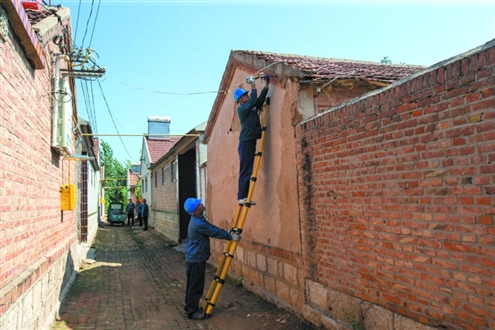 救援人员在王打卦村修整围墙(视频截图)