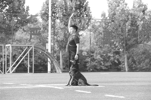 “好,定”。齐天立刻在原地停住。看到孙振荣跑向远处,齐天并没有跟着孙振荣,只是在原地看着他。十秒,二十秒,一分钟过去了,孙振荣还没有发出口令,齐天身体像被定住了一样一动不动。烈日下,齐天伸出舌头喘着粗气,“来”这时,远处的孙振荣举起右手向齐天示意,孙振荣命令结束的瞬间,齐天也调整姿态向孙振荣飞快跑去。“好狗,真棒。”孙振荣似乎对齐天这次初训的表现很满意,脸上也露出笑容。