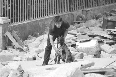 考核人员告诉记者,在实际的救援现场中,利用搜救犬针对地下矿井坍塌、不确定空间搜救、狭小空间搜救存在训导员不便于接近现场,安全隐患较大的可能性,因此训导员和搜救犬无法同时进入现场搜救。这项考试可以避免搜救现场训导员对搜救犬进行远距离指挥搜索时,存在搜救犬没有指向性搜索浪费体能和搜救时间。