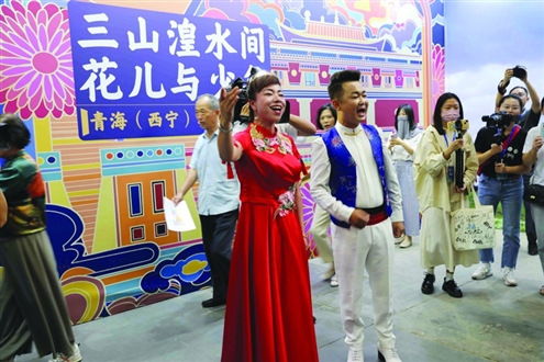 从青藏高原到黄土高坡,到中原腹地,再到齐鲁大地,不同区域文化各具特色,聚焦在某一类非遗时,便又呈现不同特色。湟中堆绣、蜀绣、鲁绣风格各异,老爷山花儿会、兰州羊皮筏子+花儿、宁夏回族山花儿之间亦有差异,四川民歌、陕北民歌、河曲民歌更是特色迥异,永登木偶戏、泰山皮影戏、提线木偶戏各成一派……