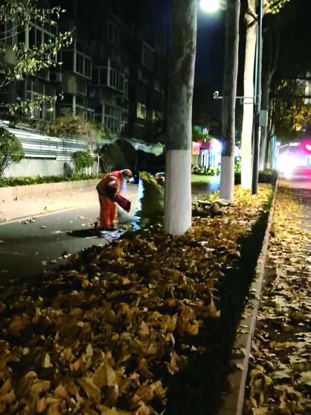 为了应对落叶,济南环卫工凌晨四点多就开始忙碌