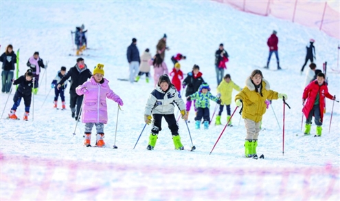 眼下正值雪季,烟台市不少市民来到滑雪场滑雪,享受冰雪运动带来的乐趣。图为12月27日,小朋友在烟台市塔山滑雪场滑雪。◎新华社发