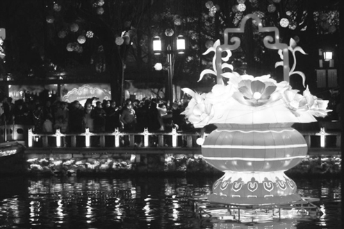 假期里来趵突泉看迎春花灯的市民络绎不绝记者周里摄