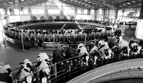近年来,临沂市沂南县加快推进畜牧业产业集群建设,建立健全饲草种植、肉牛奶牛饲养、肉奶制品加工等全产业链条,优化资源配置利用,促进当地群众就业增收。图为2月27日,当地一家企业牧场工作人员正在转盘式挤奶机旁工作。◎新华社发