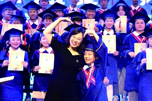 六年级毕业暨升学典礼上,一张照片被定格:一位帅小伙在上台领毕业证书时,对宋婷比了一个心,宋婷立即“接招”,负责摄影的老师留下了这个难忘的瞬间;上学期的期中表彰会上,一名8年级的男生从上台就难以掩盖激动的心情,沉浸在无比的喜悦之中,镜头同样记录下这一时刻。在宋婷看来,这两张照片里的孩子,阳光、健康、率真、主动,他们正是长清湖学校想培养的孩子的样子。