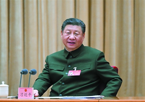 3月7日下午,中共中央总书记、国家主席、中央军委主席习近平出席十四届全国人大二次会议解放军和武警部队代表团全体会议并发表重要讲话。新华社发