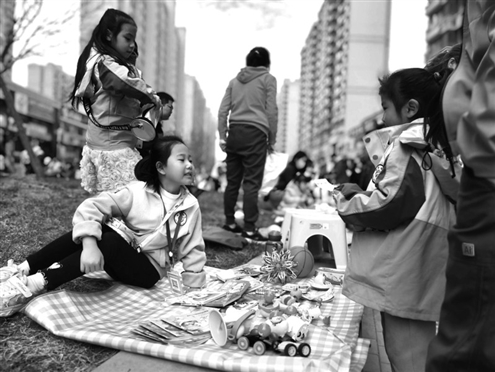 孩子们积极参与,将家中闲置的玩具、文具、绘本图书以及自己制作的手工制品等物品拿出来,在划定好的摊位前依次摆放好并贴好价格标签进行二次交易,让这些闲置的物品找到新主人。伴随着小朋友们清脆的叫卖声和交易成功欢快的笑声,把活动推向了高潮。