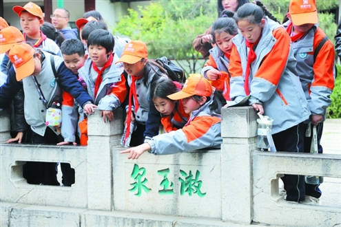 “济南共有多少名泉?”“趵突泉是怎么形成的?”“漱玉堂的匾额是谁题名的?”孩子们拿着研学手册,一边观察一边聆听老师的讲解,每走到一处便对应着手册上的问题,经过片刻的思考后写下答案。“为什么趵突泉的‘突’少一点?”“漱玉泉和李清照有什么渊源?”一路上,孩子们不光学习知识,还会动脑提出问题,研学导师见状都会耐心做出讲解,从被动接受到主动表达,孩子们在快乐中学习并将知识牢记在心。