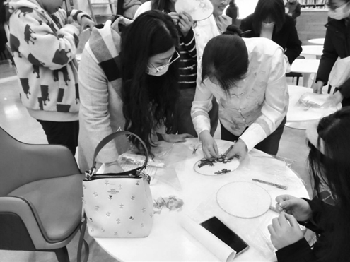 “在我知道图书馆开办夜校后,我就主动要来教课。”教授团扇刺绣的郭静,是山东女子学院的一位专业老师,她表示,团扇刺绣是一项传统技艺,这个课堂让传统技艺走进了民众之中,是一种传承。