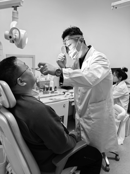 王宝东给患者进行前鼻镜鼻腔检查