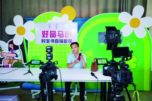 在马山镇的南宓村,党支部书记房泽鸿经常化身“主播”带货。