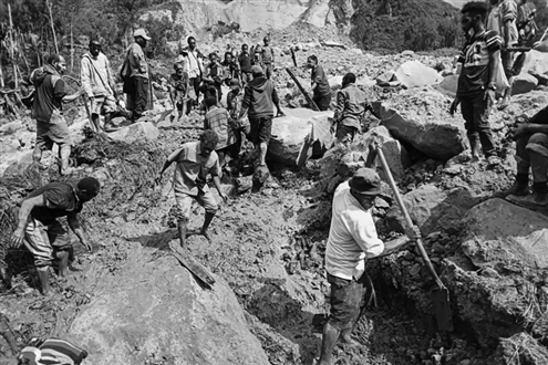 5月26日,人们在巴布亚新几内亚一处发生山体滑坡的村庄开展救援工作。新华社发