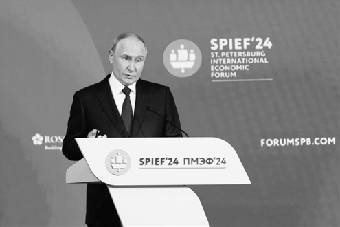7日,普京在圣彼得堡国际经济论坛全体会议上讲话。新华社发