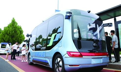 点击查看原图 商报济南消息 7月13日10点20分,一辆迷你小巧的蓝色公交车平稳地驶进位于济南历城区的环华山湖华阳宫公交站点。与人们日常所见不同的是,这辆贴有“鲁A 166N试”临时行驶号牌的公交车只配载一名安全员,并无司机手动驾驶。这意味着,济南首辆无人驾驶公交车“上路”。