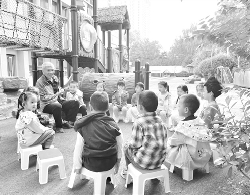 济南市槐荫区公园里幼儿园邀请了老党员,为小朋友们讲述过去的故事,孩子们通过听红色故事,学唱红色歌曲,了解了党的历史,懂得了当今幸福生活来之不易,在幼小的心灵中播种下一颗颗爱国的种子。