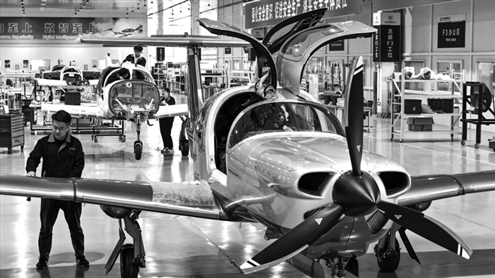 点击查看原图 近年来,青岛莱西市利用空域条件优势,探索融合飞行新模式,打造通航产业园,加快发展整机制造产业,引进行业优质项目,落地飞机整机生产、复合材料制造、零部件生产、飞行服务等配套项目12个,在固定翼飞机及无人机整机制造、飞行培训、航空教育等方面不断实现突破,生产的飞机订单主要出口北美、欧洲等国家和地区。图为11月3日,在青岛万丰钻石飞机制造有限公司,工人正装配飞机。