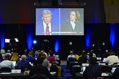 9月10日,哈里斯与特朗普在关键“摇摆州”宾夕法尼亚的费城进行首场电视辩论。整个辩论过程两人火力全开,不惜进行人身攻击。据美国《纽约时报》统计,整场辩论,哈里斯发言37分41秒,其中17分25秒用于攻击特朗普;特朗普发言43分03秒,其中12分54秒用于攻击哈里斯。另据美国媒体进行的“事实核查”,两人辩论过程中充斥着谎言和误导。