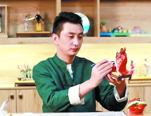 李斌出生在面塑世家,从小跟着爷爷学习面塑手艺,后来李斌开始自己制作面塑。李斌创新了面塑题材、手法,将年轻人喜爱的形象和传统相结合,其作品精致巧妙,既传统又现代,具有很强的文化气息和艺术吸引力。“我做的面塑很多都是卡通人物,它们的特点是头大身子小,比较萌,受到了年轻人的喜爱。”李斌说,“传统戏曲人物卡通化,生活事物拟人化,在传承中创新,在创新中传承,才能让非遗‘活起来’。”