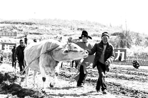 二月二在农耕活动中是重要的节日,在这一天村民们为牛梳妆打扮、披红挂彩,举办耕牛犁地比赛,准备迎接春耕(资料图)
