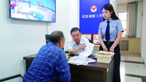 李荣凯(中)为市民做调解工作 荣凯调解工作室供图