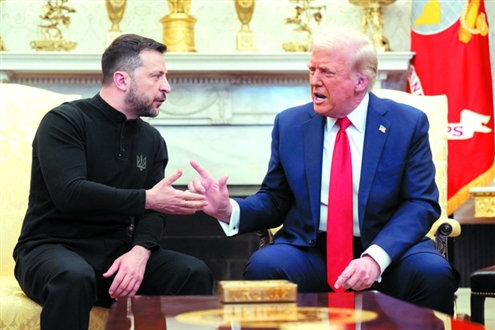 2月28日,在美国华盛顿白宫,美国总统特朗普(右)与乌克兰总统泽连斯基会晤。当日二人在媒体前爆发激烈争吵,美乌矿产协议暂未签署。