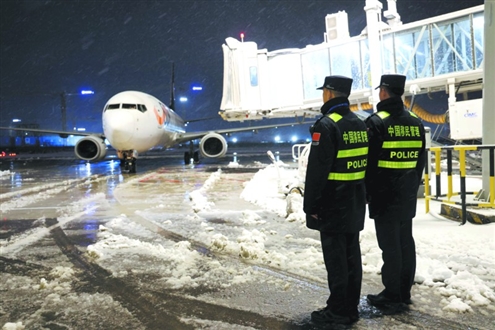 点击查看原图 商报济南消息 3月2日,济南市突降暴雪,济南遥墙国际机场口岸部分国际客货运航班延误。济南出入境边防检查站积极应对天气影响,全力保障口岸出入境航班安全顺畅通关。