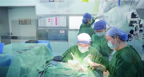 3月3日,齐鲁医院耳鼻咽喉科副主任张寒冰为4岁重度失聪患儿进行人工耳蜗植入手术 记者 王莹 摄