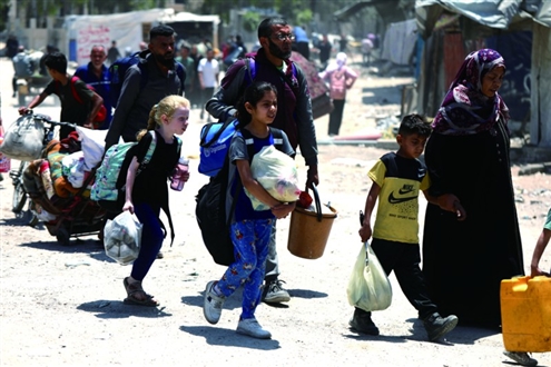 5月30日,在加沙地带北部杰巴利耶难民营,巴勒斯坦人逃离家园