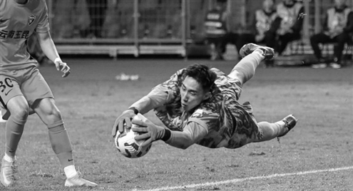 泰山队年轻门将于金永 新华社发