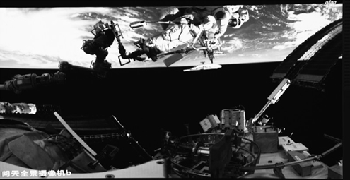 这是神舟二十号乘组航天员陈冬在舱外工作的画面 新华社发