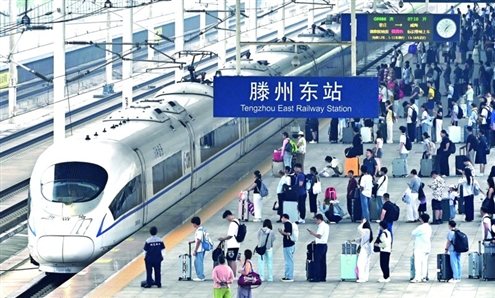 8月31日,为期62天的2025年全国铁路暑运落下帷幕。暑运期间,铁路部门在三季度列车运行图的基础上,编制实行暑期临客运行图,根据旅客出行需求灵活调整售票策略,及时增加热门方向、区间和时段运力投放。同时,各地铁路部门强化出行服务和安全管理,全力保障旅客平安有序温馨出行。图为当日,旅客在滕州东站准备登车。