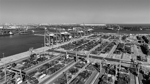国家统计局27日发布数据显示,1至9月,全国规模以上工业企业实现利润总额53732.0亿元,同比增长3.2%,增速继续回升。图为10月27日拍摄的河北省唐山港京唐港区集装箱码头(无人机照片)。