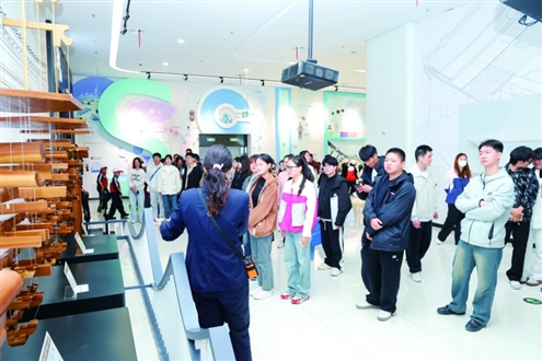 首站抵达山东省科技馆,展厅内的互动展品迅速吸引了师生的注意力。从趣味力学实验到前沿人工智能展示,师生们纷纷动手体验,在亲身体验中真切触摸创新驱动发展的澎湃脉搏。
