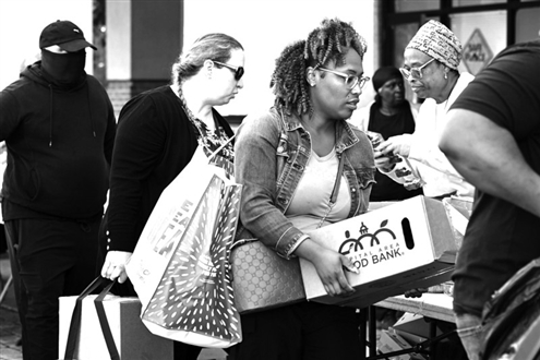 10月21日,在美国马里兰州海厄茨维尔市,联邦雇员领取免费食品。新华社发