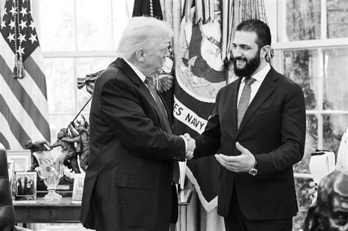 点击查看原图 美国总统特朗普10日在白宫与到访的叙利亚政权领导人沙拉举行闭门会谈,后者成为1946年叙利亚独立以来首位访美的叙领导人。访问期间,美国宣布延长对叙利亚的制裁豁免,叙方则表示同意与美合作打击极端组织“伊斯兰国”。
