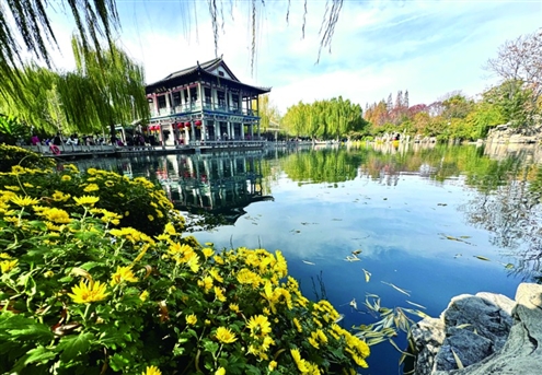 点击查看原图 初冬的济南,暖阳褪去了夏的燥热,添了几分清润。五龙潭公园内,泉水与银杏相映,鸭群与光影嬉戏,勾勒出一幅动静相宜的泉城初冬画卷。