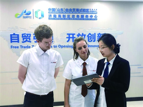 服务主动“送上门”,精准对接企业涉外需求。济南高新区组建外籍人才服务联动小组,深入企业开展政策宣讲,2024年以来已开展专项座谈交流20余次,提供涉外咨询服务800余次。在济南综合保税区设立“流动审批窗口”,与园区联动开展涉外政策咨询、帮办代办等服务,让企业不出园区就能享受绿色通办服务,提升涉外服务便捷度。