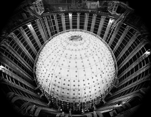 这是去年10月9日拍摄的建设中的江门中微子实验中心探测器(拼接照片)新华社发