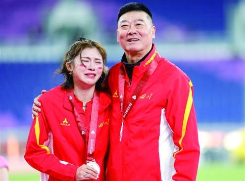 11月19日,获得亚军的四川队选手吴艳妮(左)在颁奖仪式上哭泣 本版图片均为新华社发