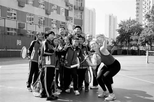 10月14日上午,济南国际网球公开赛“网球进校园”活动在济南市阳光100小学举行。法国选手勒舍米亚与英国选手巴尼特两位WTA国际球员走进校园,与师生展开了一场富有意义的体育文化交流活动。