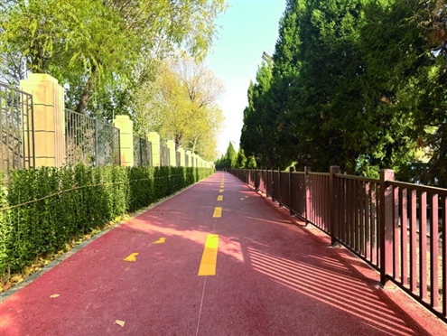 顺着停车场往学校大门走去,映入眼帘的,是一条新修的学生专用通道。这条通道好似一条被拉直的红色塑胶跑道,平坦又宽敞。“我们多方联系,集资120余万元,从学校南门到省道103线这一段,建设了200多米的学生专用通道,实现了人车分离,解决了以前人车混行的混乱局面。”孙安吉说。