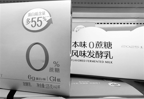 12月4日,在北京某商超酸奶冷柜中,带有“0蔗糖”等标签的商品占据主流位置 新华社发