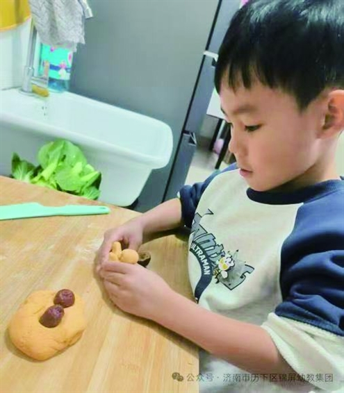 不少家庭晒出了形态各异的“亲子牌”馒头,并引导孩子们感受水和面粉的比例以及酵母的作用,孩子也将自己在幼儿园学到的揉捏方法以及制作花样造型的本领应用在生活中。在这个过程中,家长通过亲身参与,看到了孩子超越以往的动手能力和专注神情,初步感受到了“家园共育”带来的惊喜,信任感由此牢固建立。