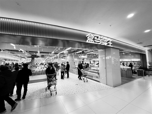 新开业的盒马鲜生门店位于世纪大道万达广场地下一层