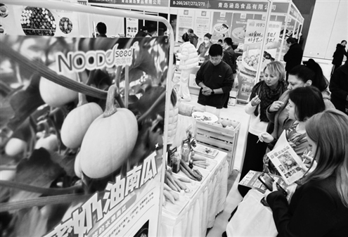 12月19日,2025上合国际现代农业及餐饮业博览会在青岛开幕,展品覆盖现代农业装备、绿色农产品、优质种苗、餐饮食材等领域。博览会同期还将举办国际采购商对接会,香辛料产业论坛、美食嘉年华等活动。图为当日,客商在博览会一家绿色有机蔬菜展位参观。