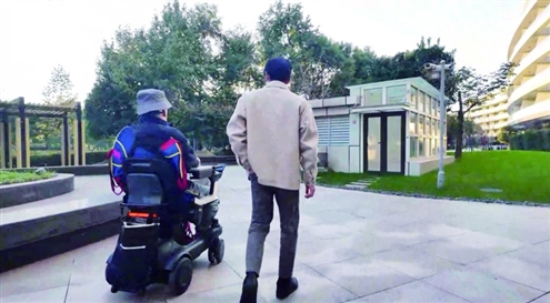 患者(左)通过脑智卓越中心等单位研发的脑机接口意念控制轮椅 新华社发