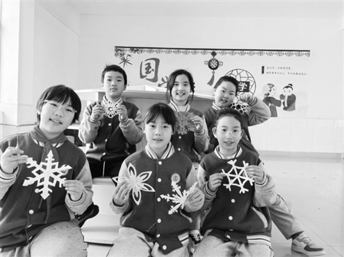 学生们准备好了正方形彩纸,对角折三次变成小三角形,用铅笔在边上画波浪纹、小月牙,再用安全剪刀小心裁剪,轻轻展开,一朵独一无二的雪花就成型啦,大家把自己剪的雪花拼在一起,装点教室,氛围感直接拉满。大家还一起制作雪天安全手抄报,把知识和创意结合起来。有人设计标题,比如“雪天安全小卫士”;有人画走路防滑、打雪仗的安全场景;有人贴上剪好的雪花;有人誊写安全小贴士。用蓝白为主色调,点缀暖红色,让手抄报既好看又实用,还能加深大家对安全知识的记忆。